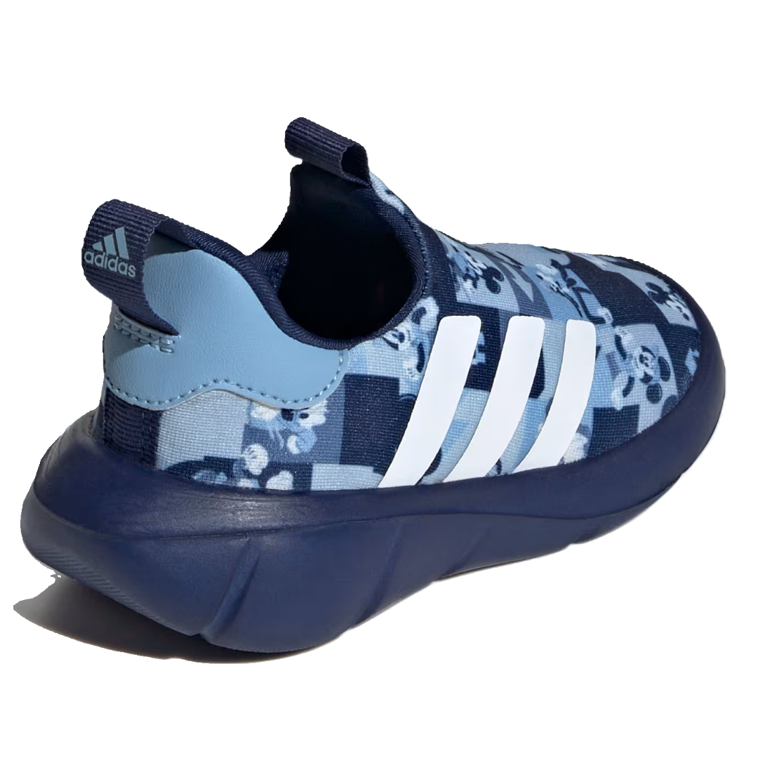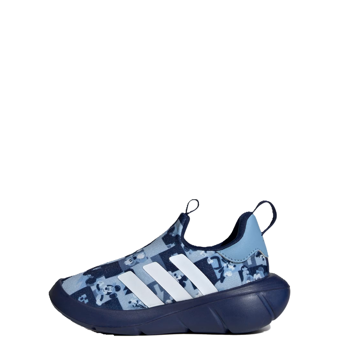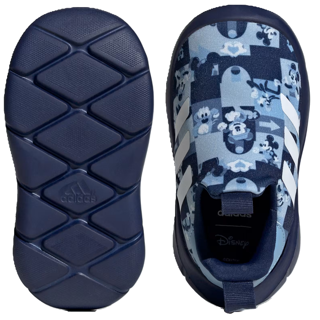 Adidas Disney Monofit mismo tenis para pie izquierdo y derecho, no hay forma equivocada de usarlos. Color azul con un estampado de Mickey.