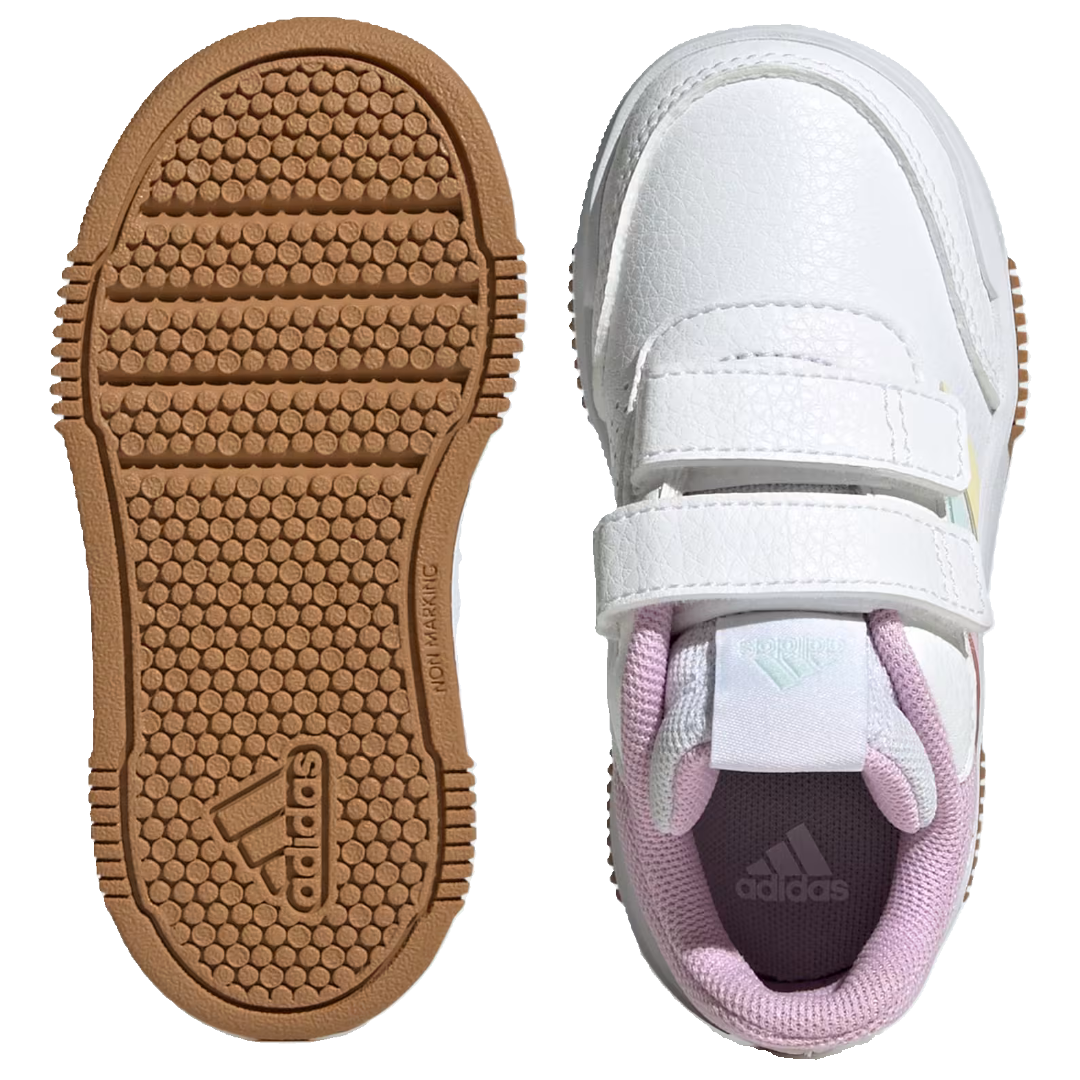 Adidas Tensaur Sport 2.0 en piel sintética en color blanco y colores pastel.